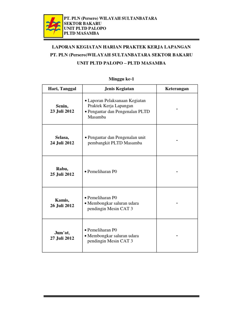 Laporan Kegiatan Harian Praktek Kerja Lapangan Pltd Masamba Bagian 1 Pdf